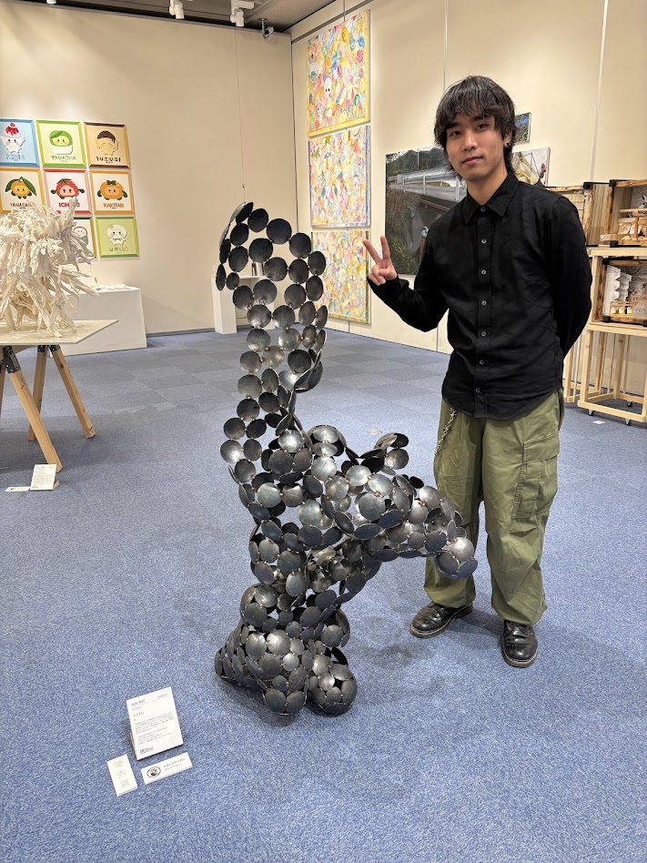 金属彫刻に取り組み、鉄を叩いてパーツをつくり、バランスを考えながら溶接していくという本格的な制作プロセスを経て作品を完成させました。素材と向き合いながら形を探っていく姿勢が印象的で、力強さと繊細さが共存する作品に仕上がっていました。