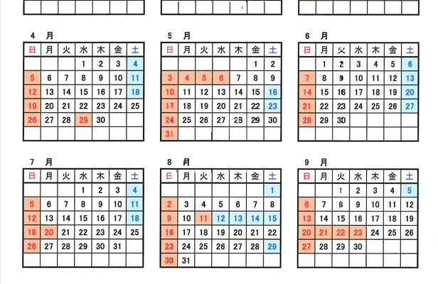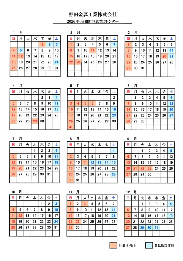 2026年度就業カレンダー